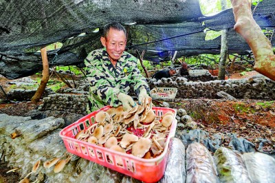 东坑村菇农正在采摘蘑菇。曾恒贵摄/光明图片